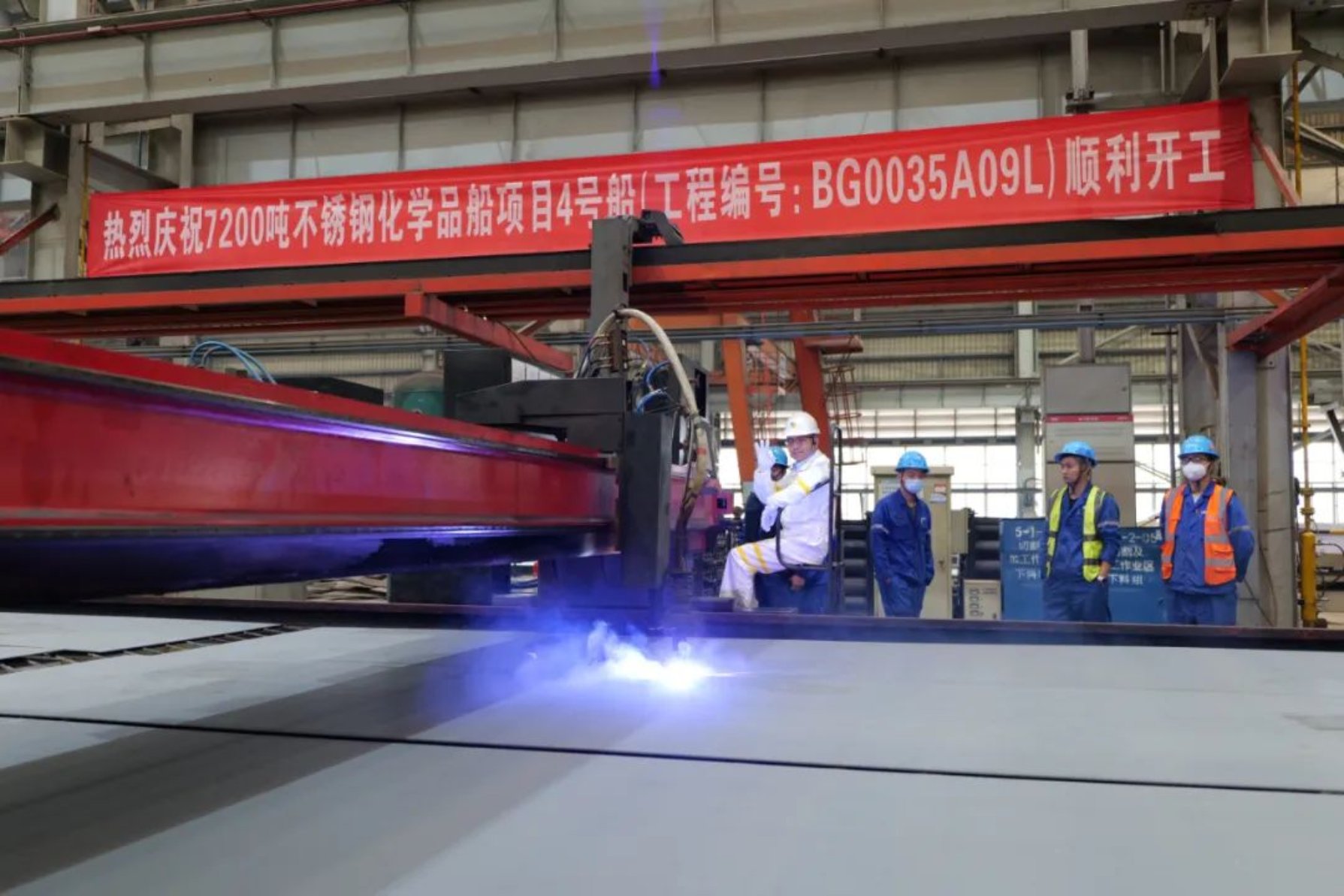 2022年10月27日,中國船舶武船承建上海君正船務有限公司的7200載重噸不銹鋼化學品船項目4號船在武船雙柳總部順利開工。