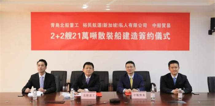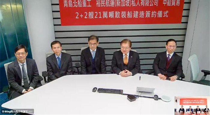 1月29日,中國(guó)船舶工業(yè)貿(mào)易有限公司、武船集團(tuán)北船重工與裕民航運(yùn)股份有限公司在青島、臺(tái)北兩地,通過(guò)視頻形式舉行了2+2艘21萬(wàn)噸散貨船項(xiàng)目云簽約儀式。這是繼32.5萬(wàn)噸礦砂船項(xiàng)目后又一次重大戰(zhàn)略合作,充分體現(xiàn)了船東給予的認(rèn)可和支持!