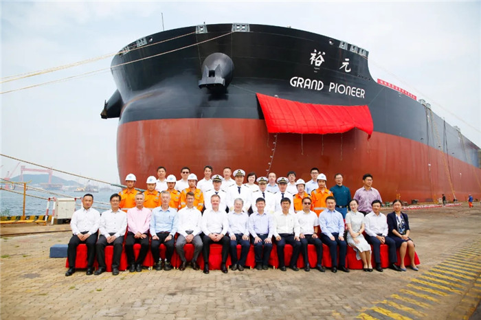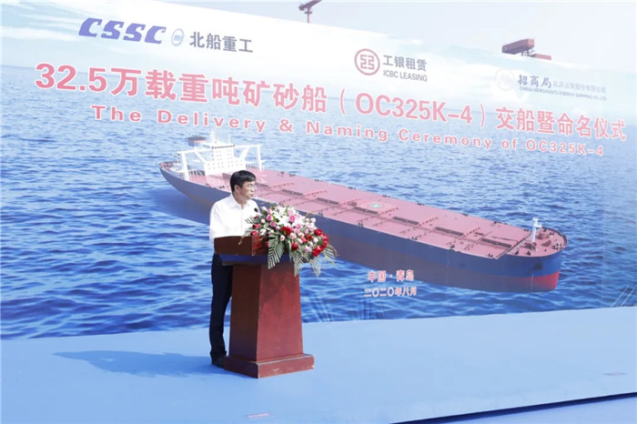 上午9:00,武船集團北船重工為工銀租賃和招商輪船建造的第四艘32.5萬噸礦砂船“ORE CHONGQING”輪命名暨交船儀式在3號碼頭舉行,這是各方在黨中央的正確領導下,抗擊疫情取得的重要成果。工銀租賃航運金融事業部副主管賈浩、北船重工總經理谷克超代表雙方簽署了交船議定書。