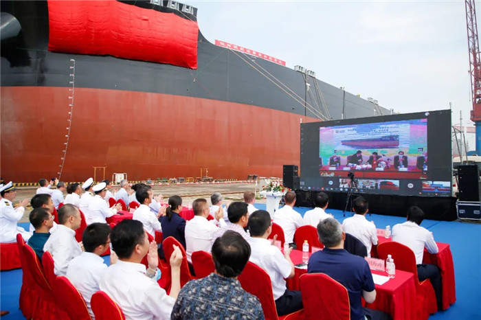 上午11:00,北船重工首次采用儀式現場視頻連線的形式,于臺北、新加坡、青島三地同步舉辦為裕民航運股份有限公司建造的“裕元”輪命名儀式,實現了“云命名”、“云砍纜”。