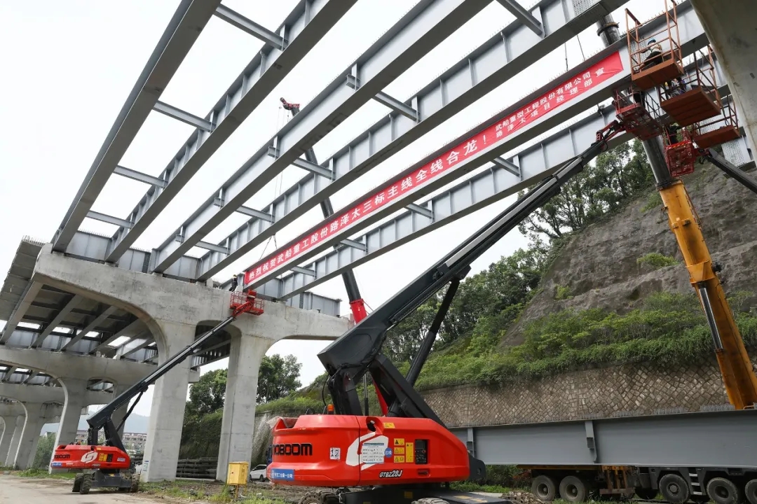 7月27日上午10時,在兩臺130噸汽車吊和三臺登高車的默契配合下,主線橋133聯(lián)最后一榀鋼板梁平穩(wěn)地落在蓋梁臨時支座上,順利完成架設(shè),中國船舶武船集團武船重工股份承建的臺州路澤太高架TJ03標主線橋鋼板梁合龍,項目已進入了最后沖刺階段。