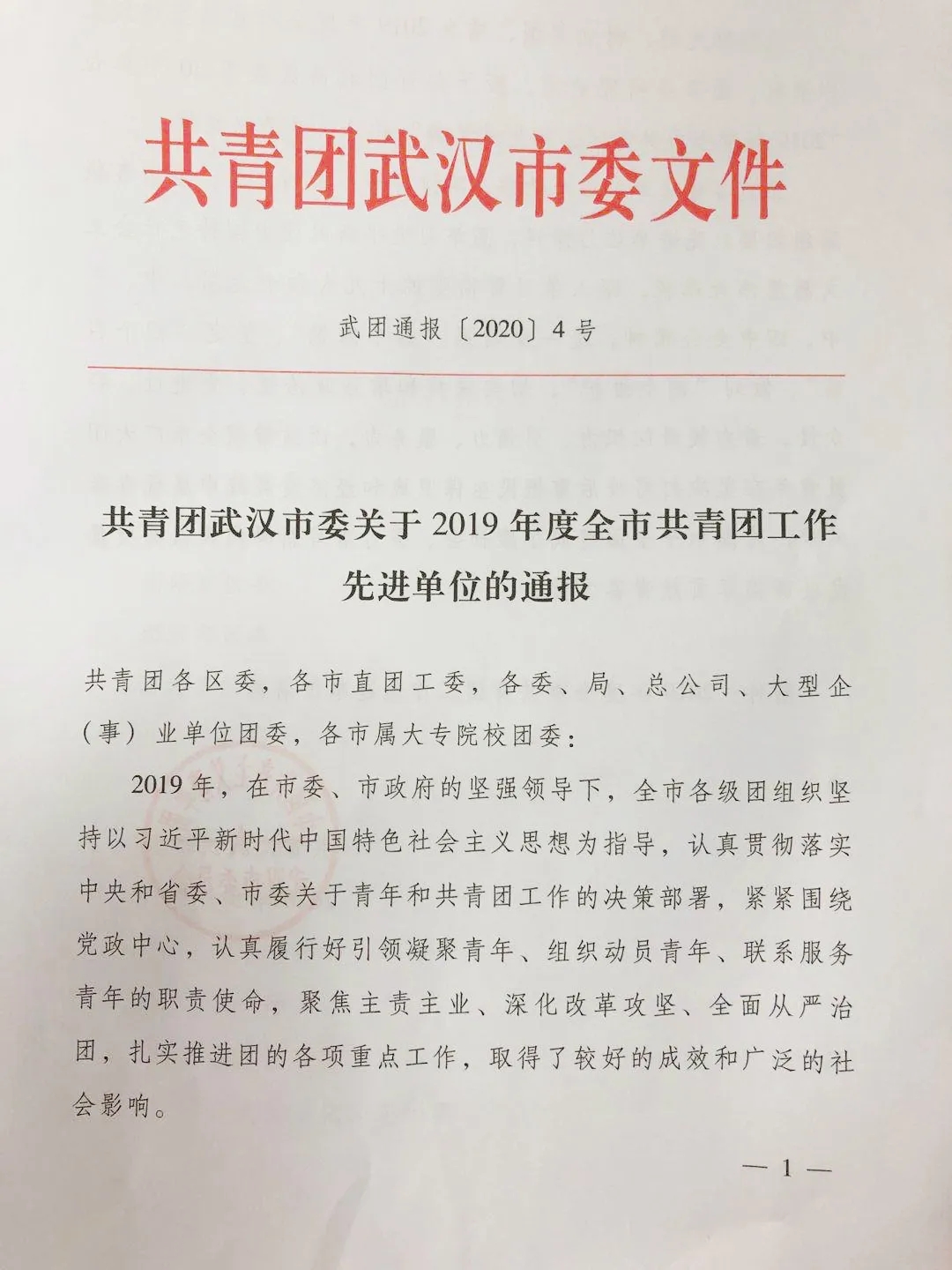 武船集團團委被授予2019年度武漢市共青團工作先進單位榮譽稱號。