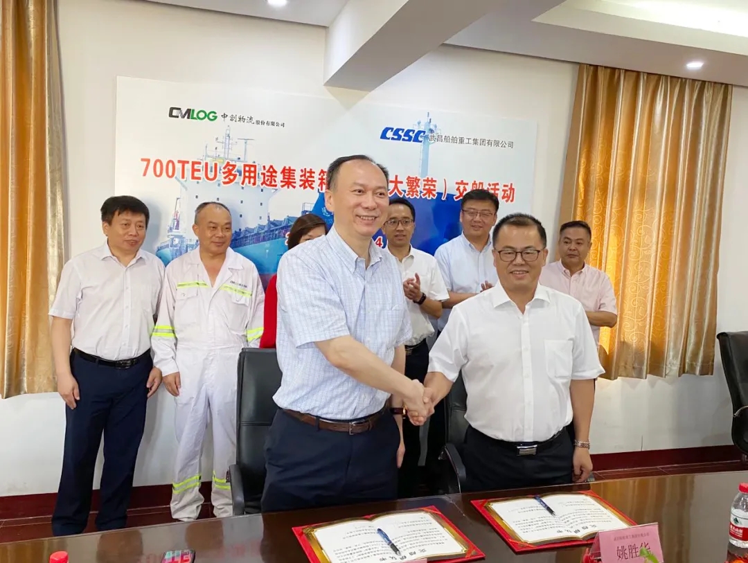 8月4日8時(shí)18分,由中國(guó)船舶武船集團(tuán)為中創(chuàng)物流青島遠(yuǎn)大均勝海運(yùn)有限公司建造的700TEU多用途集裝箱首制船(遠(yuǎn)大繁榮),在江蘇南通順利交付。中創(chuàng)物流青島遠(yuǎn)大均勝海運(yùn)有限公司董事長(zhǎng)高兵、上海船舶研究設(shè)計(jì)院副院長(zhǎng)周志勇、武船集團(tuán)副總經(jīng)理姚勝華出席了交船活動(dòng)。