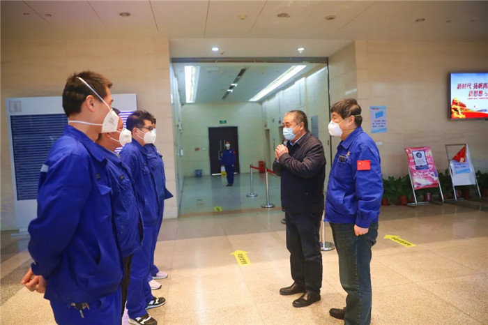 ▲張文彤在陳?降吶閫?下看望慰問公司援建火神山、雷神山醫(yī)院的職工代表
