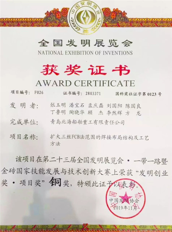 武船集團派出由科技部、戰(zhàn)略部、海工院、重裝公司、北船重工組成的6人小組參加集團公司展團,攜海工院的《一種海洋工程基地客貨后勤保障船》、重裝公司的《一種大型螺桿自驅(qū)安裝機》、北船重工的《擴大三絲FCB法焊接范圍的焊接布局結(jié)構及工藝方法》三項發(fā)明專利在國防知識產(chǎn)權展區(qū)進行了展出。