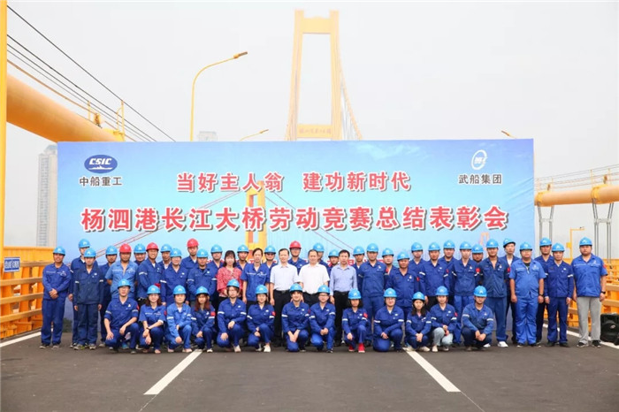 武船重工股份在競賽中總結,楊泗港長江大橋作為武漢市軍運會重點建設工程,公司在武船集團的領導下,積極響應市總工會開展的“當好主人翁 建功新時代”主題勞動競賽,科學策劃、精心組織,全體成員忘我工作,加班奮戰,全面完成了勞動競賽五大節點目標,包括S1聯、S5聯、梯坡道橋第四聯、N1聯、N7聯、YS02聯、YX01聯、主橋、防撞護欄、人行道欄桿、排水系統等施工任務,為楊泗港長江大橋按期建成奠定了堅實的基礎。