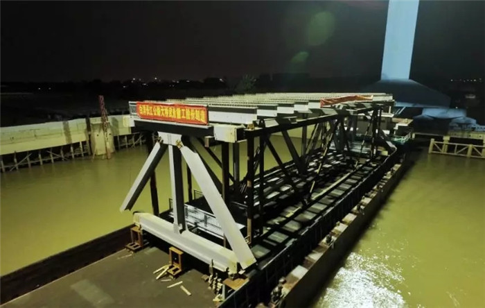 ▲白洋長江大橋首個鋼桁梁節段發運現場