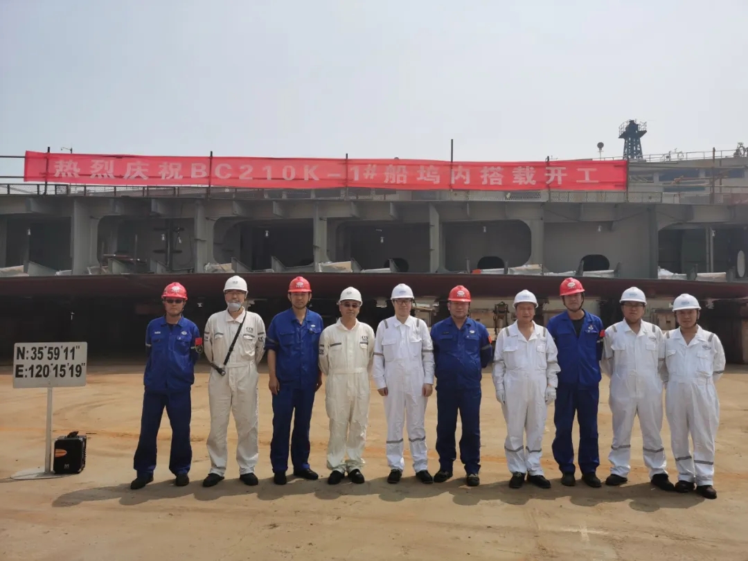 21萬噸散貨船系列首制船,塢內建造共計52個總段,巨型總段總組后整體重量將達到2000余噸,北船重工計劃采用“艏部巨型總段總組,塢內整體回靠合攏”的工藝方式,使用18臺分段定位機聯動功能,完成總段塢內回靠、合攏,達到主甲板貫通節點,可整體縮短結構專業15天以上塢期。