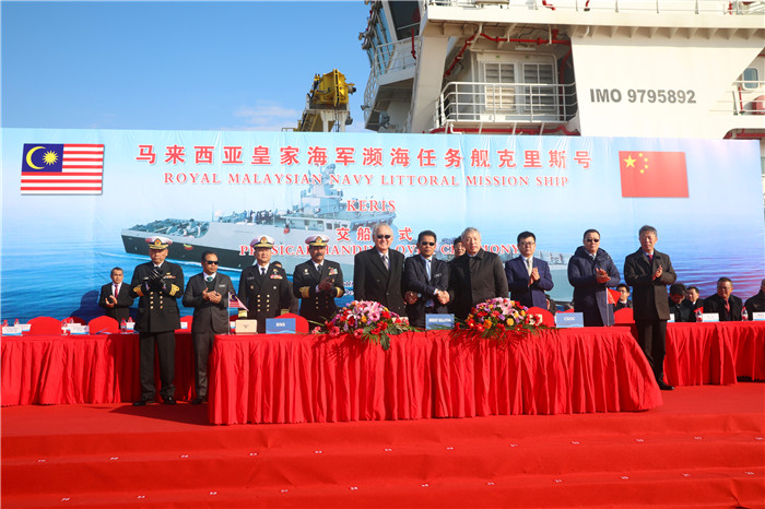 12月31日,中國(guó)船舶集團(tuán)有限公司所屬武昌船舶重工集團(tuán)有限公司為馬來(lái)西亞海軍建造的瀕海任務(wù)艦首艦在中國(guó)船舶武船集團(tuán)江蘇啟東基地交付。