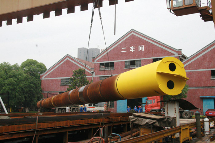 一是鋼樁建造精度高,直徑1.6米、長42米、重達80噸的鋼樁,豎立高度超過了15層樓房,體量超過了50輛普通小轎車,武船集團項目人員卻將這個龐然大物的直線度控制在了3個毫米以內,相當于每一米長度上的直線度誤差僅有一根頭發絲直徑大小,保證鋼樁順利插入水底。