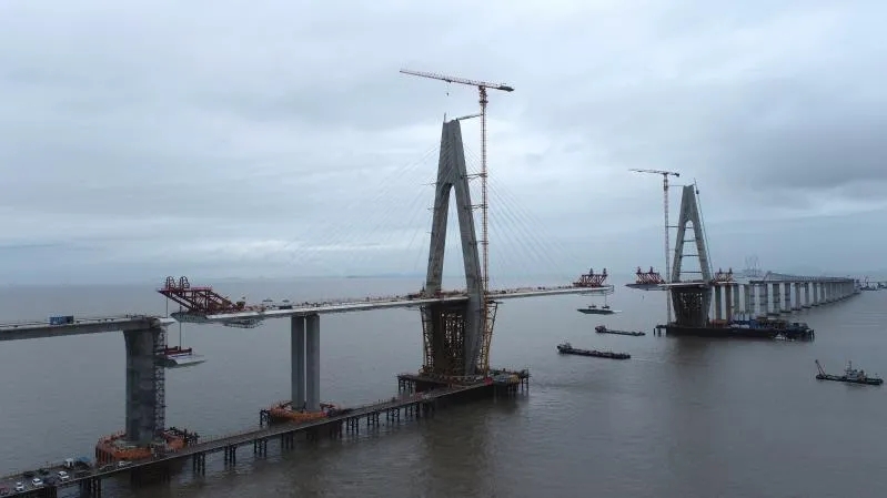 舟岱大橋南通航孔橋邊跨合龍后,將進入橋面鋪裝和橋梁附屬設施施工階段。
